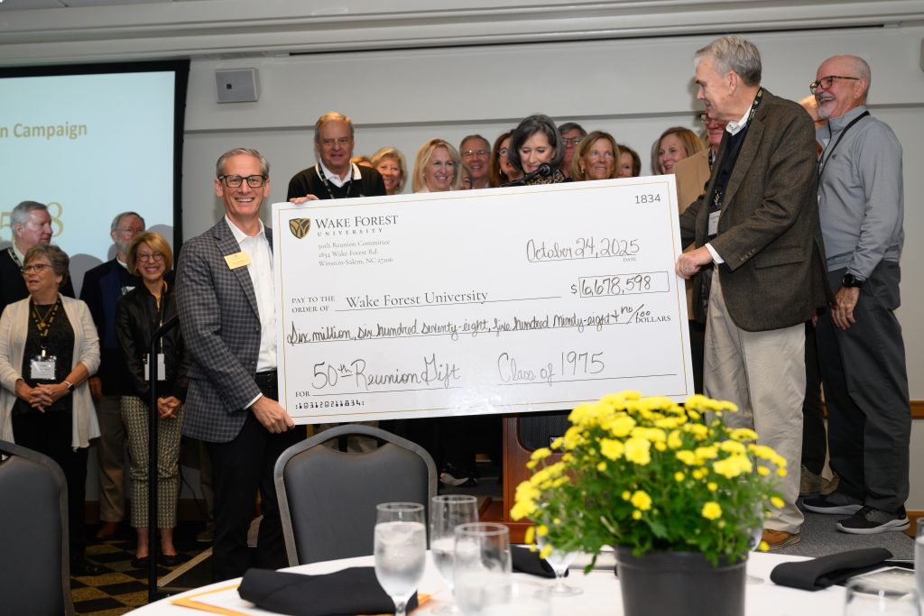 There will be a short induction ceremony for the Class of 1976 as they officially become Golden Deacs, receiving their 50-year pins. We will also present 60-year pins to the Class of 1966 and welcome the Class of 1971 as they celebrate their 55th reunion.